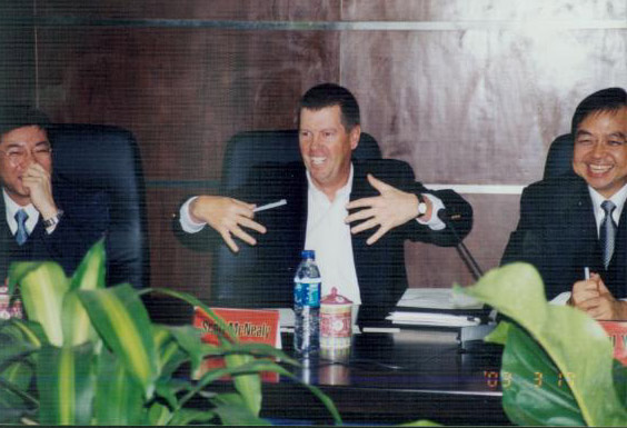 3月16日深夜,,,,,,Sun公司董事长、全球总裁兼CEO 司各特.麦克尼利(ScottMcNealy)抵达北京,,,,,,最先了他备受瞩目的第三次中国之行。。。。。。 而在此次安排紧筹的日程里,,,,,,与腾龙集团(中国)有限公司官网网络高层的谈判是麦克尼利先生第一天的主要内容。。。。。。 17日上午9:30,,,,,,麦克尼利先生来到腾龙集团(中国)有限公司官网网络东方广场办公区,,,,,,与公司高层举行座谈,,,,,,受到热烈接待。。。。。。