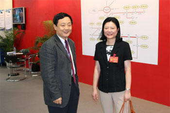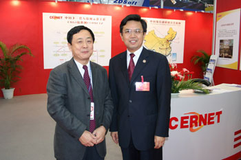 CERNET专家委员会主任吴建平教授与广东省教育厅副厅长罗远芳在CERNET展位