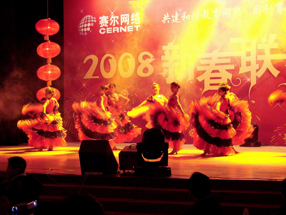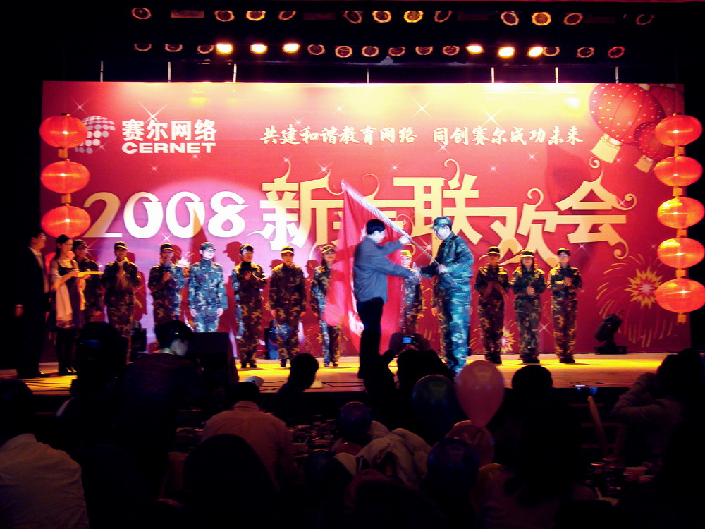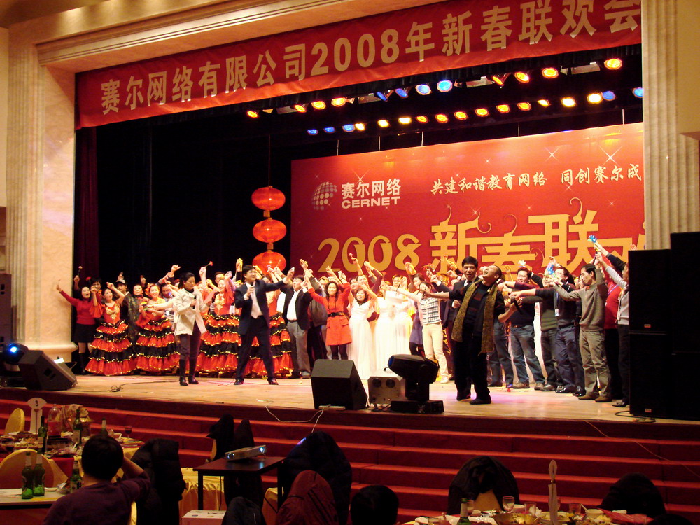 1月30日晚19:00,,,,,北京西郊宾馆一号楼银杏大厅内座无虚席、欢声笑语,,,,,洋溢着节日的气氛。。。。。以“共建协调教育网络,,,,,同创腾龙集团(中国)有限公司官网乐成未来”为主题的腾龙集团(中国)有限公司官网2008新春联欢会在这里盛大举行,,,,,清华大学向导与CERNET专家、公司向导、全体员工以及分公司、子公司的代表380多人欢聚一堂,,,,,共庆佳节。。。。。