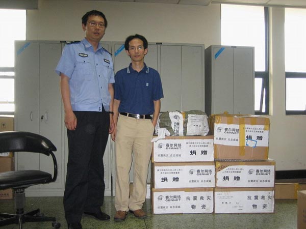 5月21日16时装备运抵成都会公安局,,,,,,四川分公司总司理金立科等前往交接。。。。。。。。成都会公安局信息通讯处吴佳科长接受捐赠,,,,,,并代表灾区人民和成都会公安局对腾龙集团(中国)有限公司官网网络表达了由衷谢谢。。。。。。。。