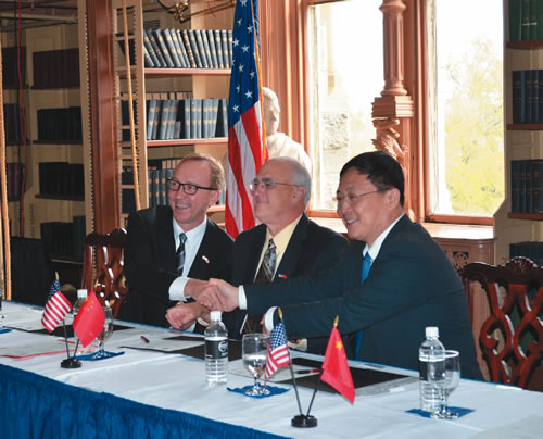 2011年11月4日,,, ,,,,,CERNET国家网络中心主任吴建平教授在华盛顿乔治城大学与美国印第安纳大学副校长Brad Wheeler、美国Internet2 CEO Dave Lambert碰面,,, ,,,,,配合庆祝中美学术网络高速互联相助的建设,,, ,,,,,并代表中国教育和科研盘算机网CERNET网络中心与美方签署了相关相助协议。。。。。。这是中美政府第一次配合出资支持的专用于学术相助的网络高速直连项目。。。。。。