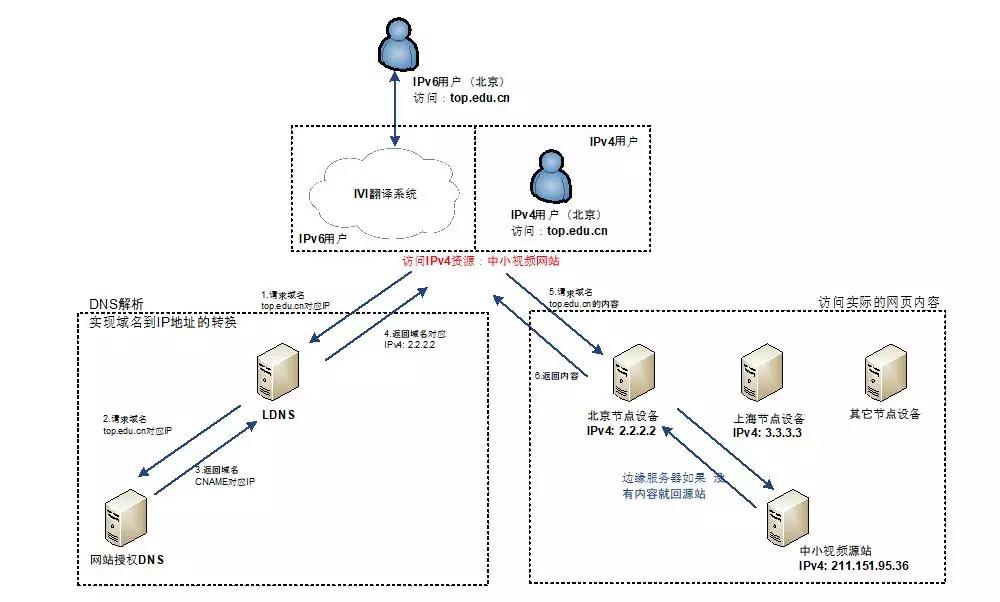 许多中小视频网站安排在IPv4情形下,,,,,,,可通过安排IVI装备举行升级刷新,,,,,,,以使IVI装备下联用户能够获取到IPv6和IPv4地点,,,,,,,能够会见IPv6资源,,,,,,,并通过IPv6带宽会见IPv4资源。。。。。。