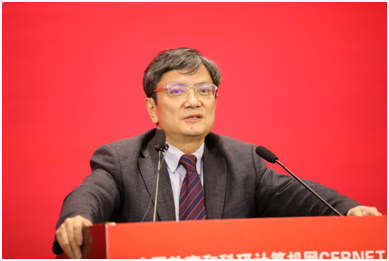 吴建平院士作了《效劳国家战略,,,,,,,,凝心聚力拼搏——热烈庆祝CERNET建设25周年》的主题报告。。。。。