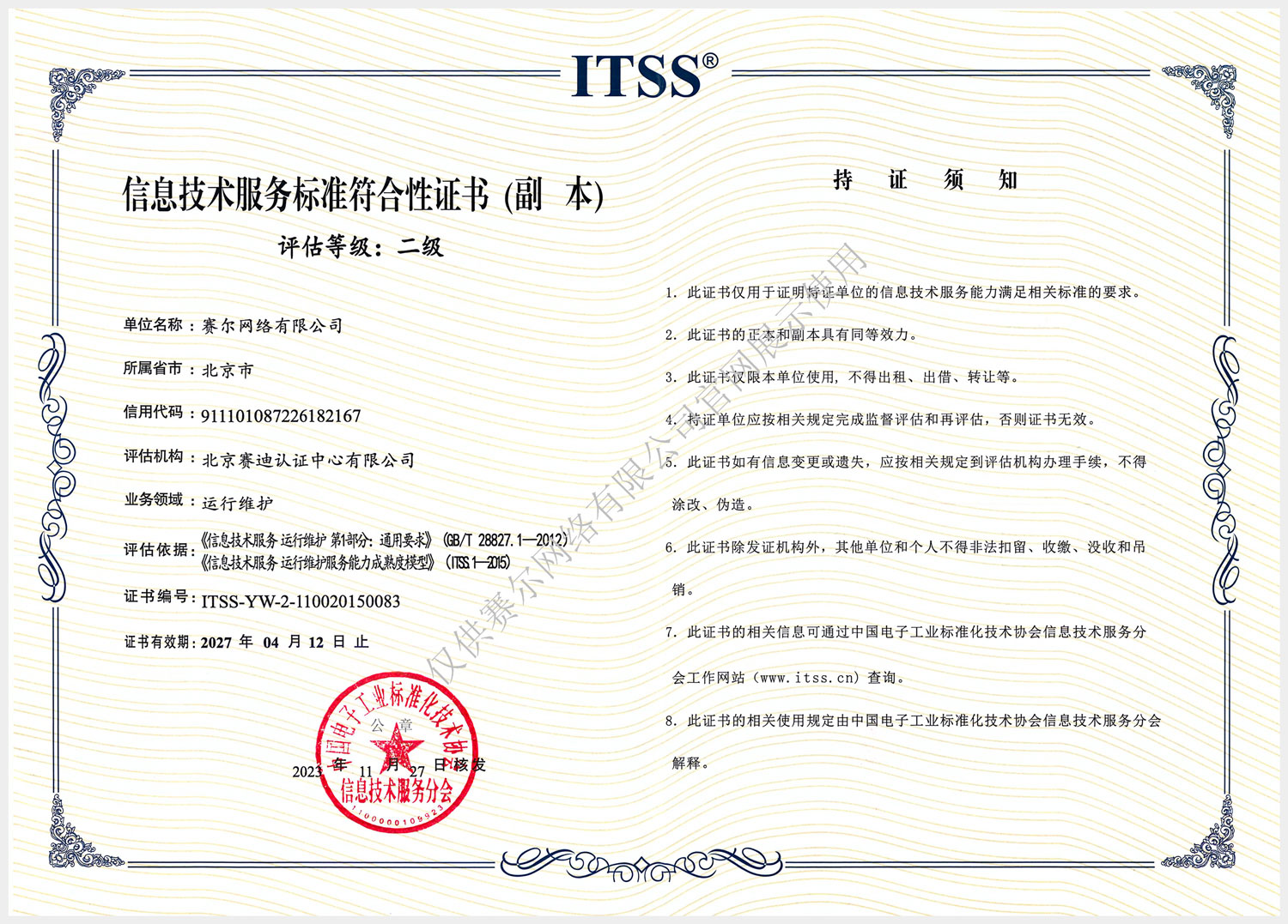 ITSS ÐÅÏ¢ÊÖÒÕЧÀͱê×¼ÇкÏÐÔÖ¤Êé